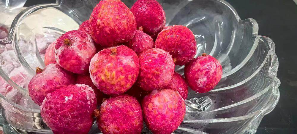 在中国科学院华南植物园,记者尝到了40多天前采摘自广州增城的“仙进奉”荔枝。这些荔枝表面还带着冰雾,果皮红得发亮,脆嫩清甜,很难想象它已在低温中“沉睡”了近一个半月。